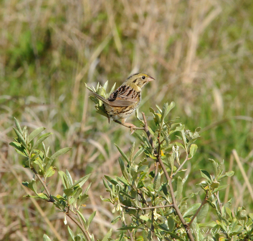 song. Most Henslow's sparrows establish their territories by singing from dead woody