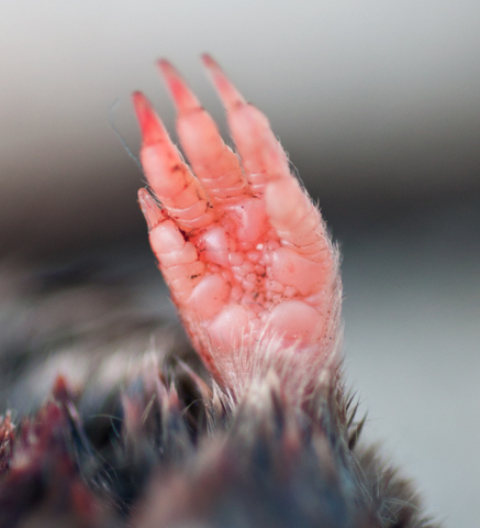 young are born in a relatively underdeveloped state; they are unable to feed or care for themselves or locomote independently for a period of time after birth/hatching. In birds, naked and helpless after hatching.