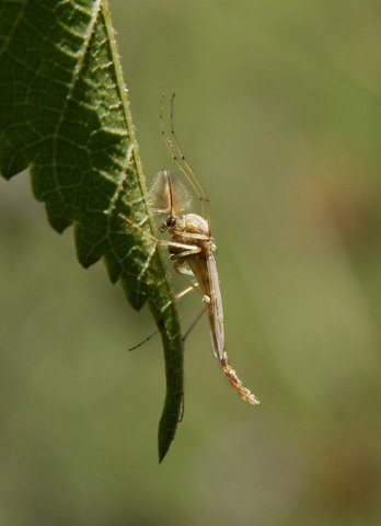 Adults are small (1-20 mm long, most less than 10 mm), slim, long-legged flies. They resemble, and are often confused with, mosquitoes ( Culicidae ), but unlike mosquitoes, they do not bite, and have no scales on their wings. Many species rest on their hind two pairs of legs, and hold their forelegs out in front of them. In most species, adult males have plumose antennae that are much larger than the females (these are probably used to locate females). Most species are dark-colored, usually brown or black.