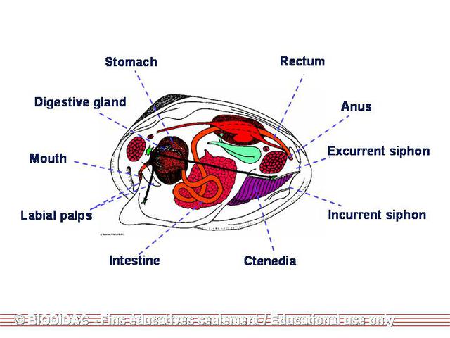 In general, unionids are filter feeders. The mussels use cilia to pump water into the incurrent siphon where food is caught in a mucus lining in the demibranchs. Particles are sorted by the labial palps and then directed to the mouth. Mussels have been cultured on algae, but they may also ingest bacteria, protozoans and other organic particles.