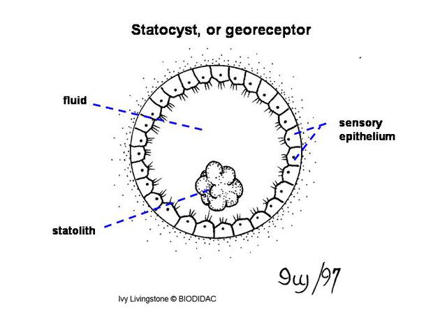The middle lobe of the mantle edge has most of a bivalve's sensory organs. Paired statocysts , which are fluid filled chambers with a solid granule or pellet (a statolity) are in the mussel's foot. The statocysts help the mussel with georeception, or orientation.