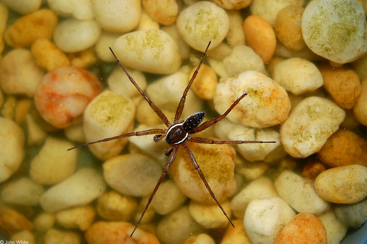 The spider is also sometimes seen dabbling its front legs on the surface of water in order to lure fish.