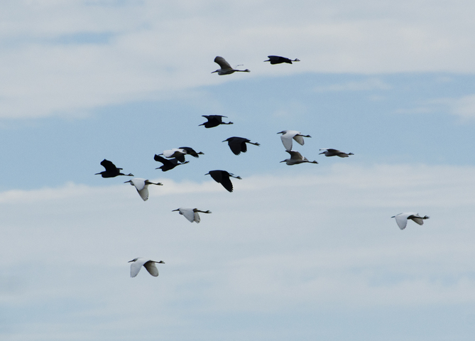Little Blue Herons are not energetic birds. They will sometimes walk quickly or even run, but are usually seen walking slowly and daintily along marshes. While hunting, these birds are loners, but nest together in small or large colonies.