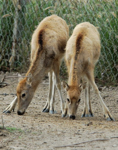 Unlike many deer species, Pere David's Deer is very fond of water. They will wade up to their shoulders in the water and will also swim. These herding animals are very social. They live in large groups except prior to and following mating when males will leave the group. Females remain in social groups throughout the year (Huffman, 2001).