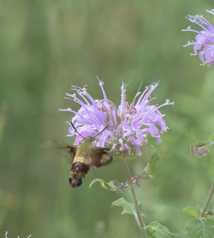 Hummingbird moths have a proboscis used to suck nectar from flowers. They feed from a variety of flowers, including honeysuckle, beebalm, lilac, snowberry and cranberry. They hover above the flowers and are often mistaken for hummingbirds. Their caterpillars feed on a variety of hosts, including honeysuckle, snowberry, hawthorns, cherries and plums. (Nicholson, 1999)
