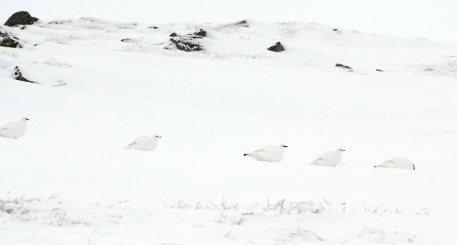 All ptarmigans have feathered feet, which act as snowshoes, allowing the birds to walk in soft snow. The feathers may also increase insulation for these year-round arctic dwellers.