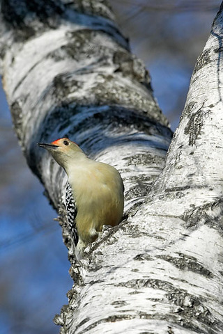 bill and lack any red on their heads.  Unlike many birds, red-bellied woodpeckers