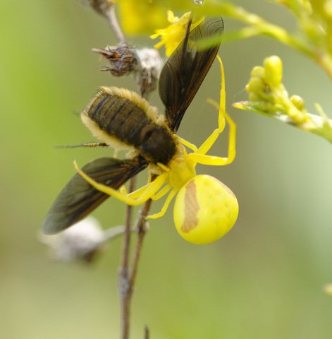 Crab spiders occur all around the world, but Misumena vatia is only found in North America and Europe (Anaconda II 1998; Kaston and Kaston 1956)