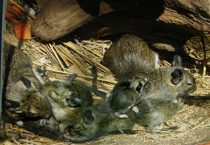 All species are good diggers and live in burrows, but some genera ( Aconaemys and especially Spalacopus ) are extremely fossorial, with the small limbs and fusiform bodies typical of rodents that spend most of their lives underground. Most live in colonies; some show complex social behavior. All are primarily herbivorous. Degus ( Octodon ) are agricultural pests in some areas. Degus are unusual in that most of their activity is apparently diurnal.