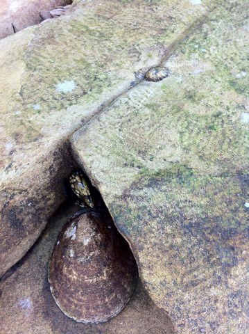 Pollicipes polymerus is found on rocky cliffs in the splash zone. They inhabit very high-energy environments because they can withstand the wave pressure very well. They receive minimal exposure to water; at the most, once a day. They are most often found within cracks and crevices in rocks to minimize their exposure to sunlight, which helps prevent desiccation. Pollicipes polymerus is most commonly found in colonies of many other gooseneck barnacles. They often grow on each other. You can find many smaller goosenecks on the stalk of larger ones. Within the colony the larger goosenecks are found in the center surrounded by the smaller ones in the periphery. They are also very likely to be seen amongst California mussel ( Mytilus califonianus ) beds (Eckman and Duggins, 1993; Hilgard, 1960; Lane C.C., 2000).
