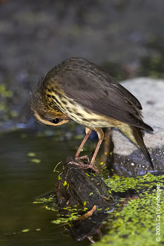 Most bird watchers only see the Northern Waterthrush in backyards, city parks, and wet places when the bird is en route to the tropical mangroves of Central and South America