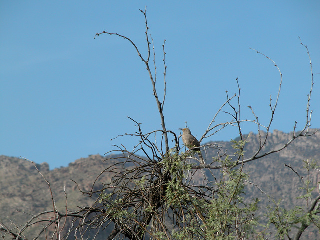 T. curvirostre has the most curious personality out of all the thrashers. Not of the shy sort, T. curvirostre broadcasts its call "whit-wheet" vigorously while flying from shrub to shrub.