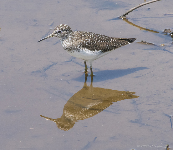 Solitary sandpipers are found most commonly along the banks of small, quiet, wooded