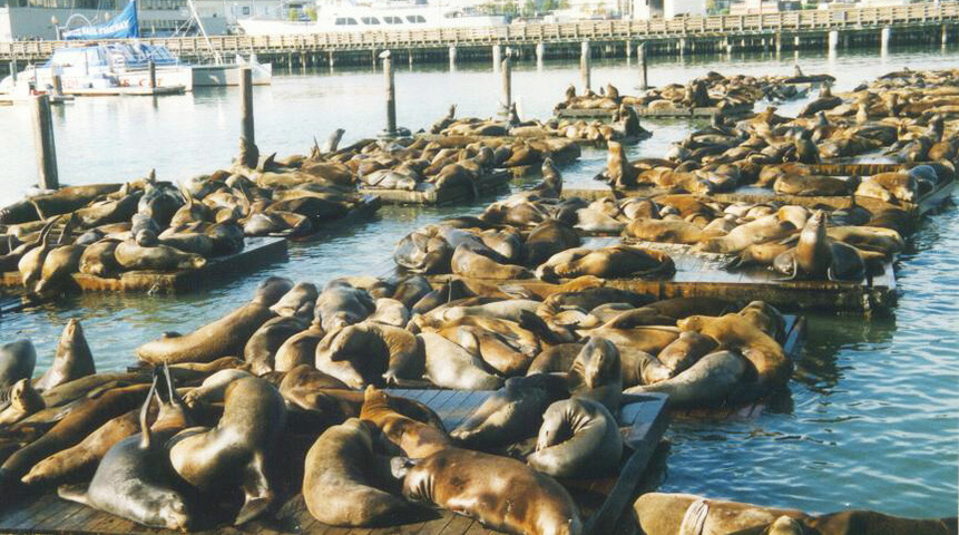 Zalophus californianus generally live along coastlines but have been found in rivers in along the northern Pacific coast. California sea lions often congregate on man-made structures such as jetties, piers, offshore buoys and oil platforms. Zalophus californianus tend to inhabit places which have undergone human intervention (Riedman, 1990).